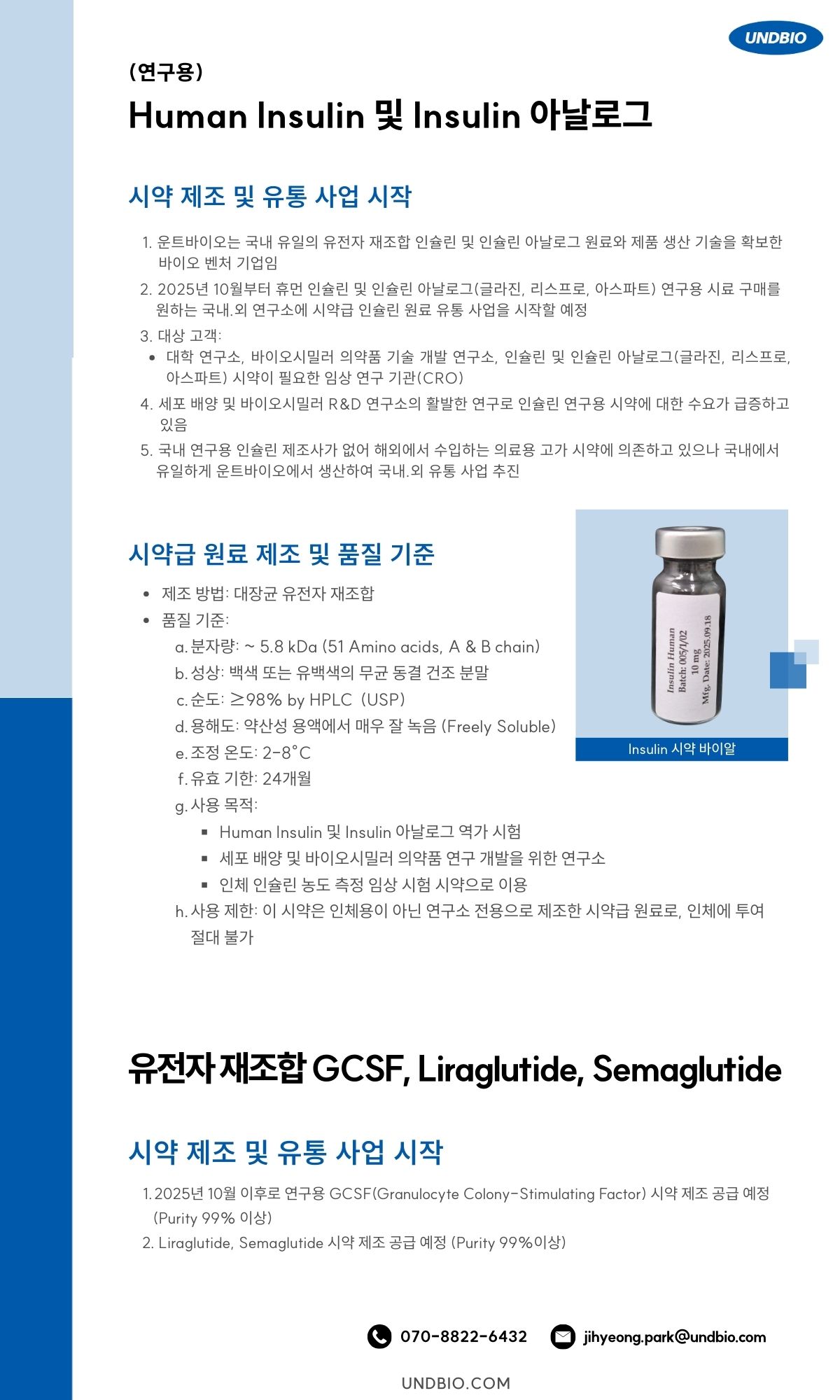 인슐린 & 유전자 재조합 GCSF, Liraglutide, Semaglutide 시약 제조 및 유통 사업