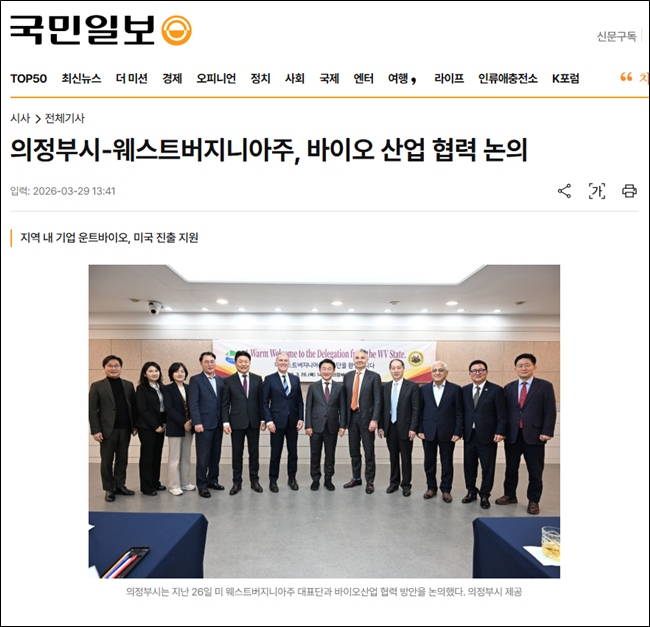 [출처] 국민일보 의정부시-웨스트버지니아주, 바이오 산업 협력 논의
